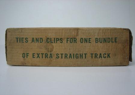 | The #2021 box contained 30 ties and a bag of clips. You really only needed 24 ties for a single bundle of rails, but I guess they thought you might need some extras. The date code below right is basically illegible. |
