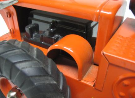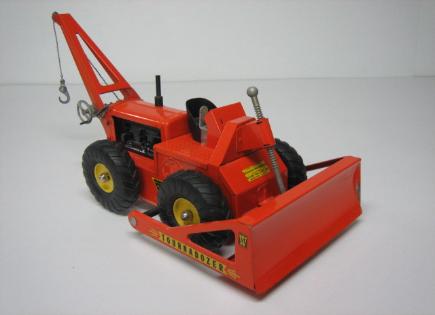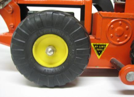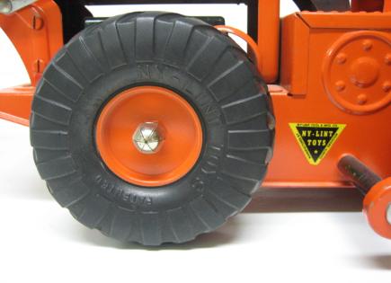 Nylint catalogs showed this toy with orange wheels and the linked chain as early as 1957. Collectors