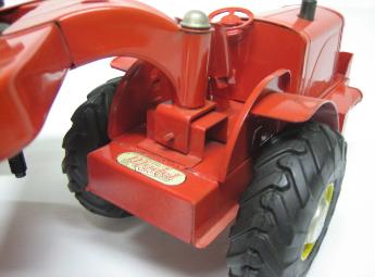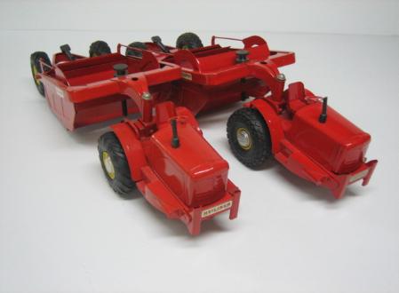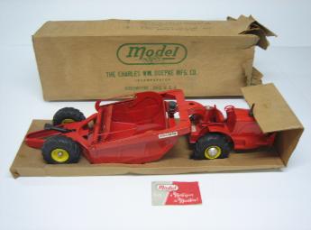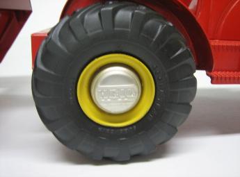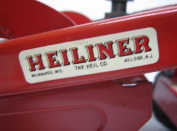 Company produced a special order Heiliner for the International Harvester Company. The same red color was used. The decals, however, identified it as an "International Payscraper" even though the front hub caps still read "Heil." These IH toys are very rare. |