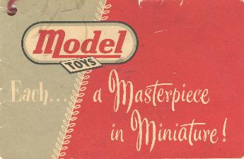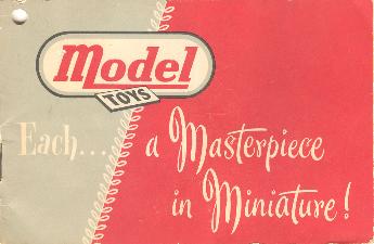 16 sides This early mini-catalog featured the Wooldridge Tera Cobra which was never produced. The #2000 Wooldridge Dump Truck is shown with a rubber stack and push-nut style hub caps which were never used on a production toy. The #2002 Cement Mixer has non--production style wheels. A great pledge for Model "Constructioneers" appears in this first catalog. |