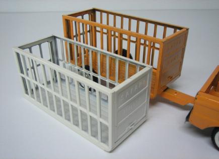 the loaded animal cage up onto the trailer.