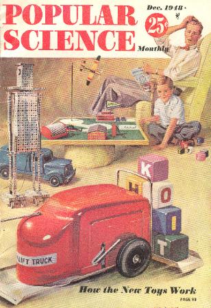 Mechanical Lift Truck in 1948. Popular Science thought very highly of its ingenious workings.