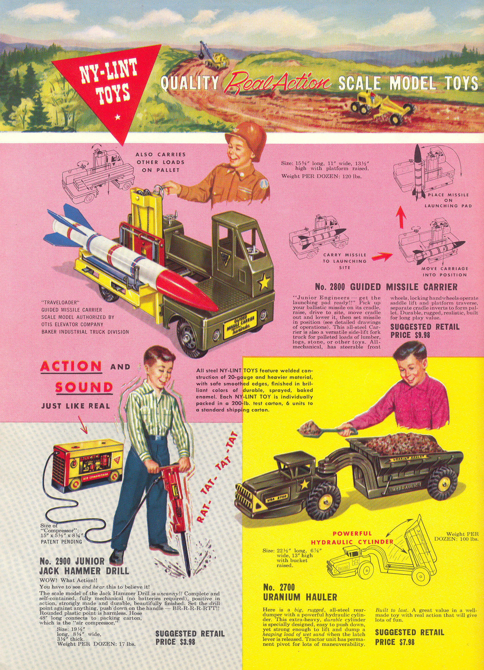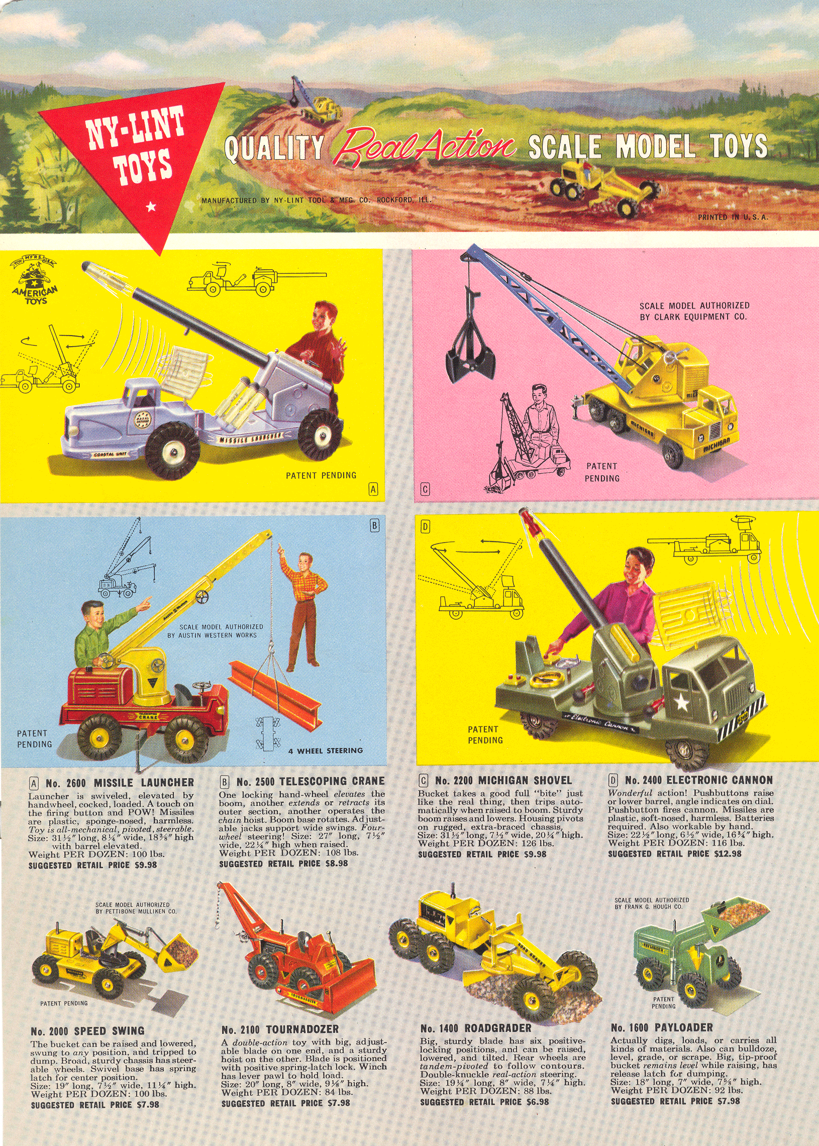 | Another great full-color ad! Although I've never seen a rocket with blue fins, everything else seems to be in order (except perhaps that Michigan Shovel illustration - wrong headlight/grille configuration(?). |