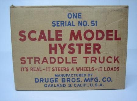 The Hyster Straddle Truck by Druge is a remarkably well-engineered toy. It duplicated the four-wheel