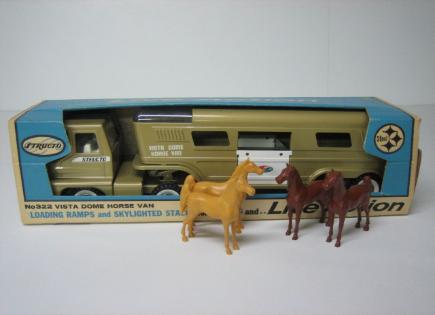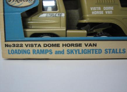 When first introduced in 1966 the Vista Dome Horse Van came in a blue color. The gold color-scheme
