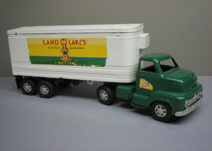 | Certainly one of the most colorful of all the Dunwell/Buckeye private label trucks! Beautiful graphics and detailed decals make this one a favorite. Reportedly, you had to send away to the Land-O-Lakes company to get one of these. |