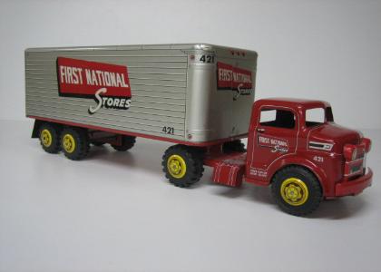This is yet another of those fabulous advertising semi trucks by Marx. Colorful, well proportioned, and