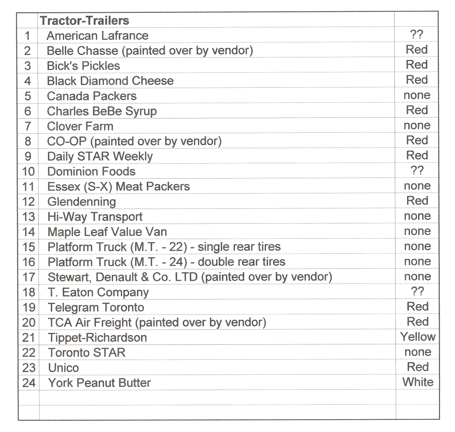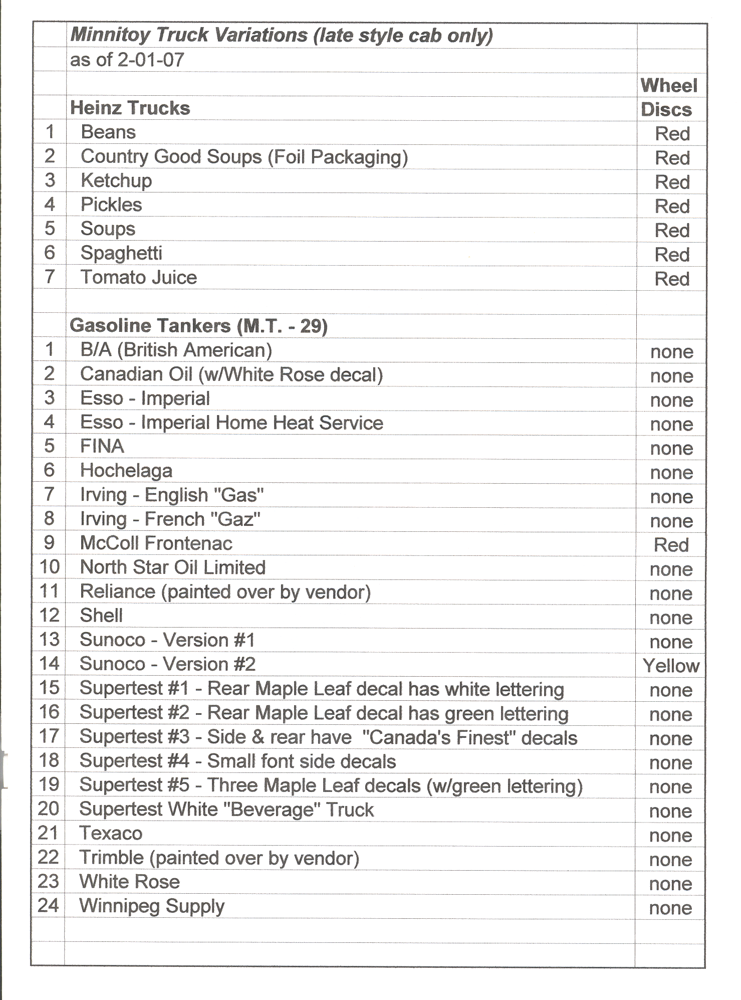 Minnitoy Truck Variations