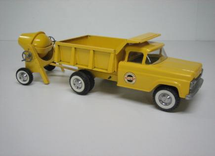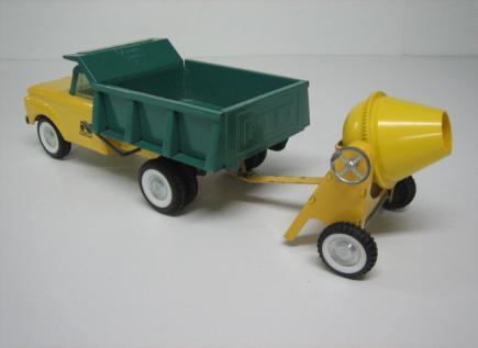 Certainly a favorite among collectors, Nylint's Dump Truck and Cement Mixer set is a knockout. Bright