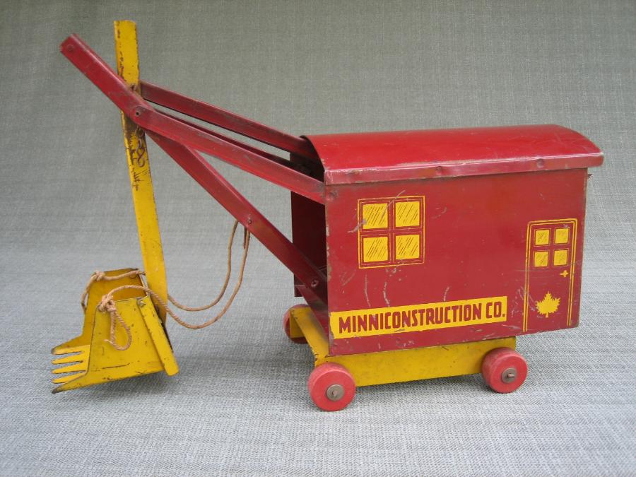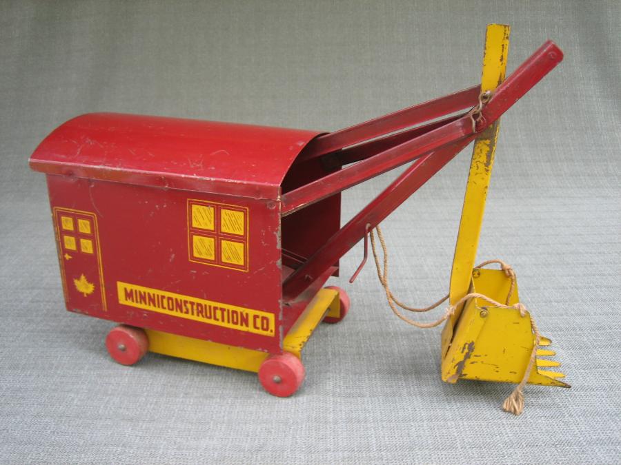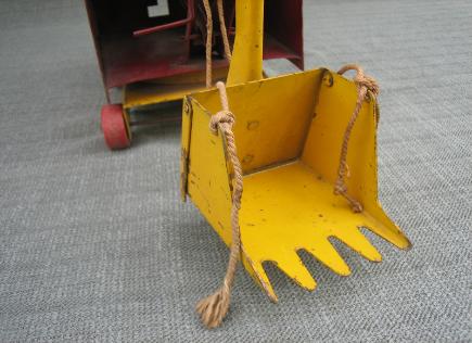 | This toy came in several paint schemes including; Green w/Yellow Trim, Silver w/Maroon trim and Yellow w/Maroon trim. The bucket and arm were detachable so you could use it as a crane. |