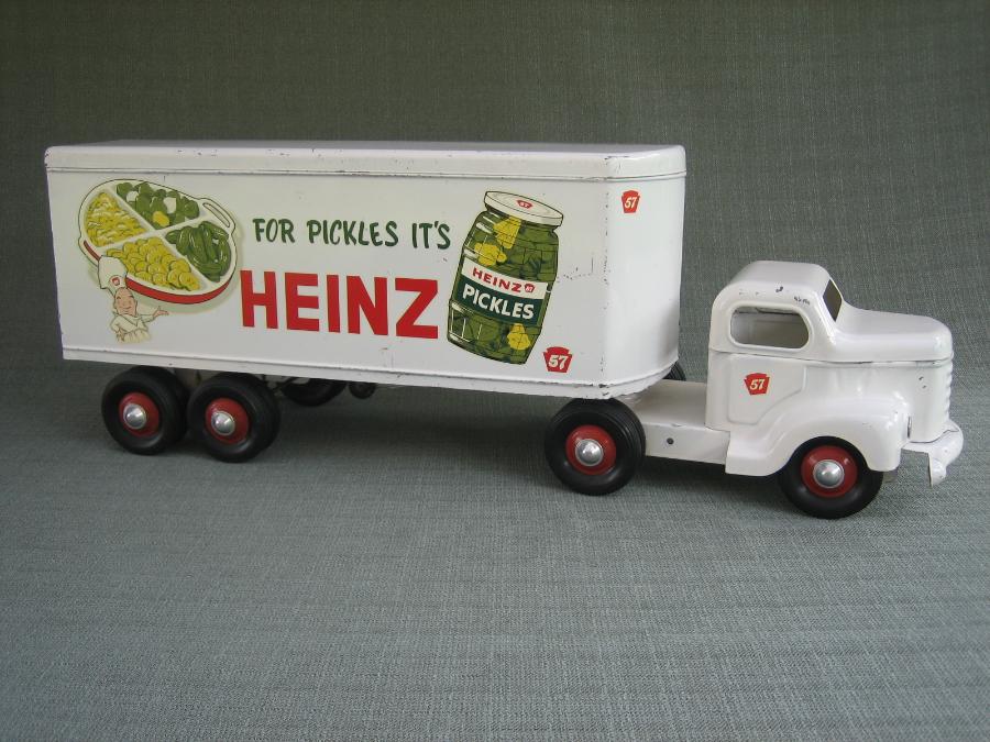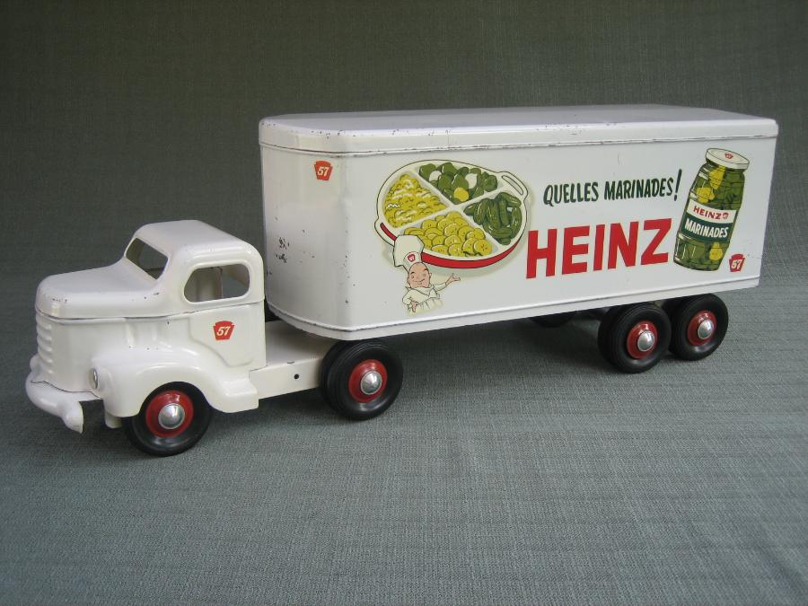 side. Other Heinz examples display the French wording on the right side, and some trucks feature English on both sides. There may have been trucks produced with French wording on both sides, but I've never seen one. |