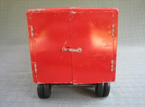 The rear door latch bar on this truck still has remnants of red paint attached to it. Most Minnitoy rear door latch bars were left in the bare metal state.