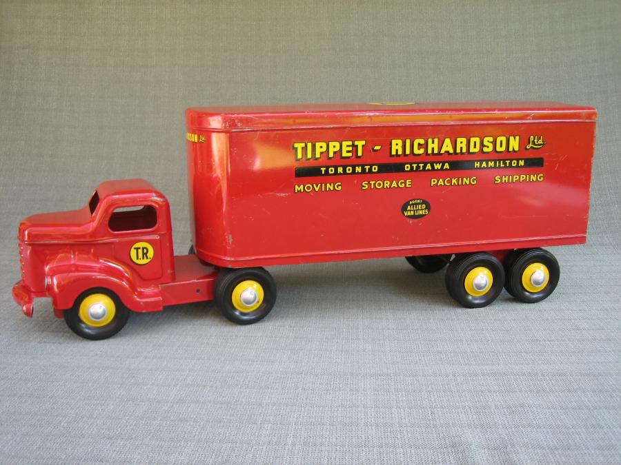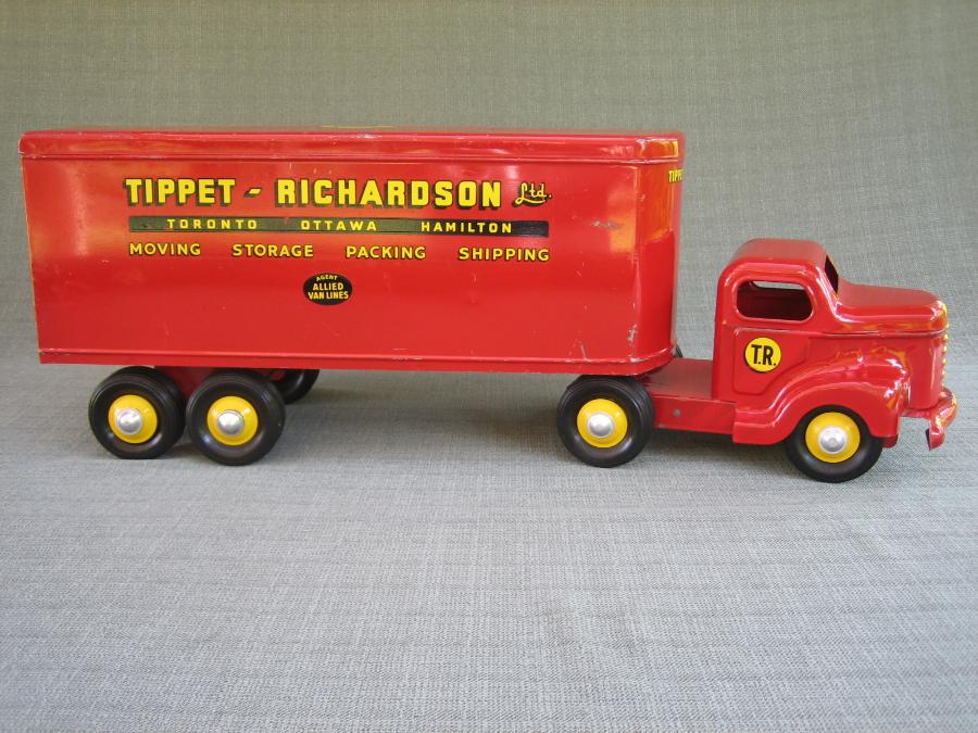 The Tippet-Richardson private label truck is a tough one to find. It is valued not only because of its rarity, but also because of its striking graphics and smart color scheme. One of the few trucks that used metal wheel discs - a nice touch!