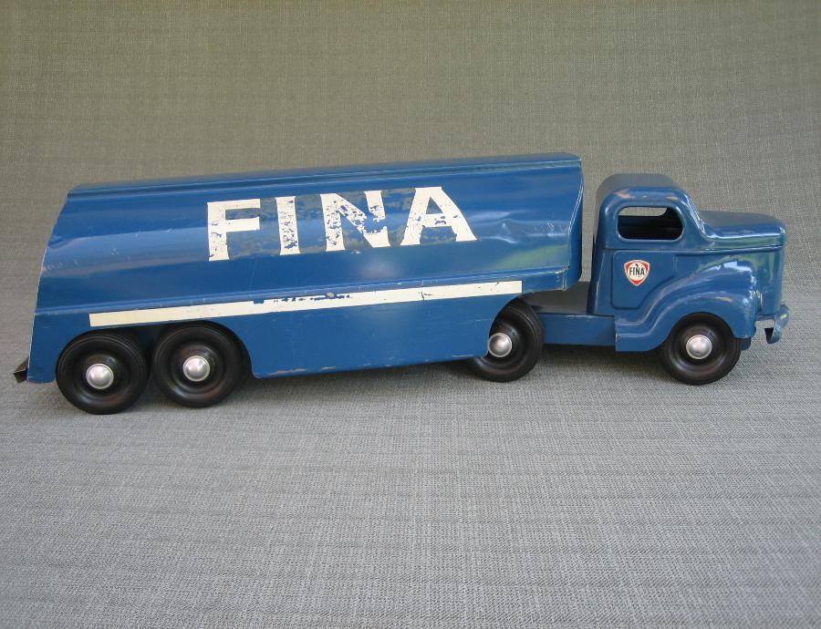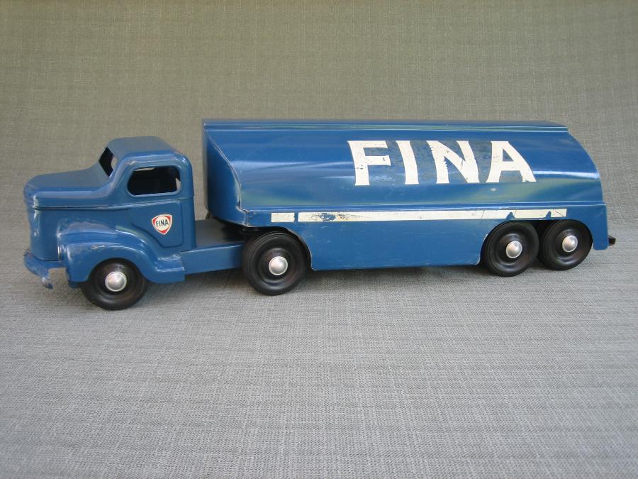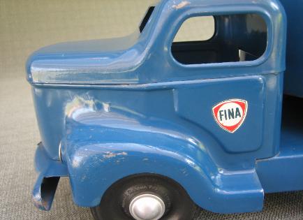 An unusual feature of this toy is the "FINA" decals on the cab doors. Most tankers displayed